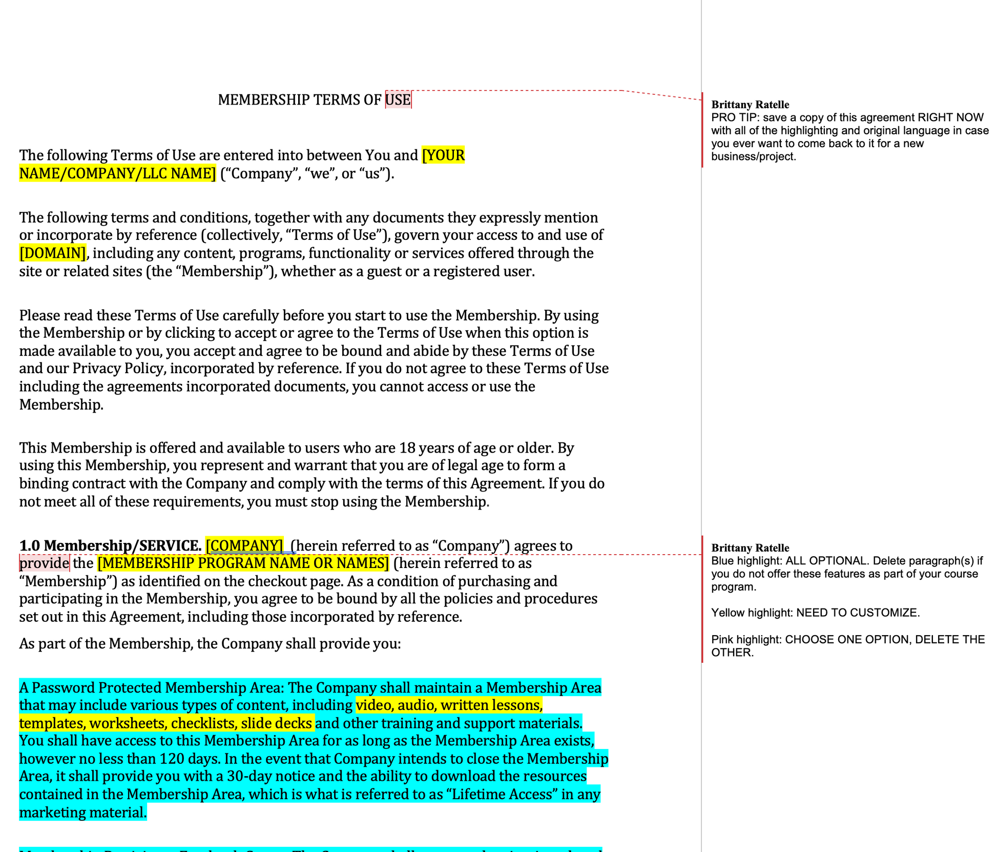 This attorney-drafted, industry-tested Membership TOU/Terms of Use Template is perfect for protecting your digital membership and for creating clear expectations with your community on what they can expect from your digital program.
